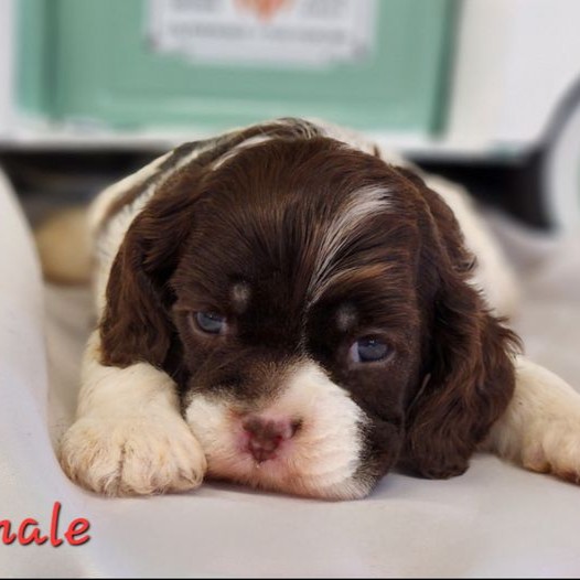 “We were so fortunate to find Kailynn and her adorable cockers at just the right time. We had a sudden loss of one of our cockers and I found Kailynn on the AKC web site. Her dog Never gave birth a short time after I spoke with her and we got a beautiful black/white/tan little girl. She came to us potty trained and just a very happy puppy. She obviously had a lot of love from the family. She is the smartest cocker I’ve ever had. We just love her. I will definitely go back to Kailynn for any future dogs”